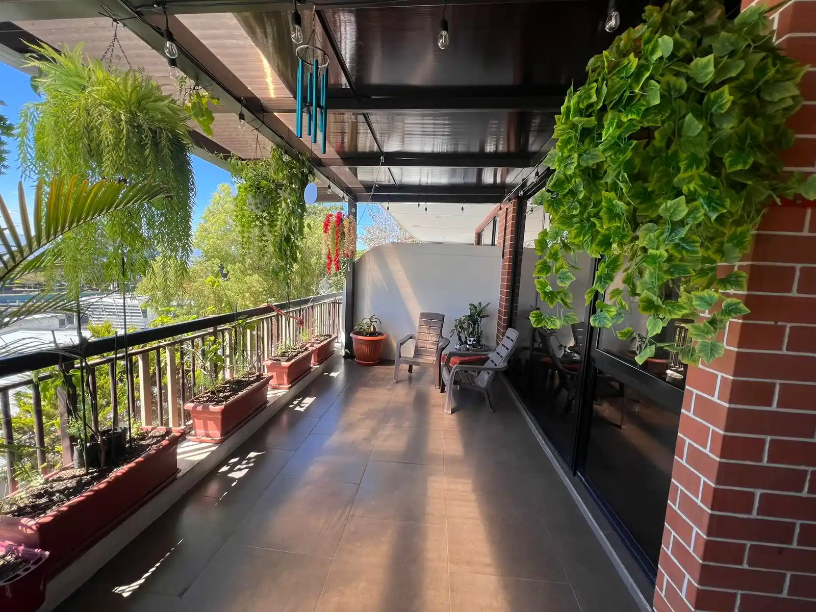 balcón amplio// con Pergola de 28Mts con luces vintage