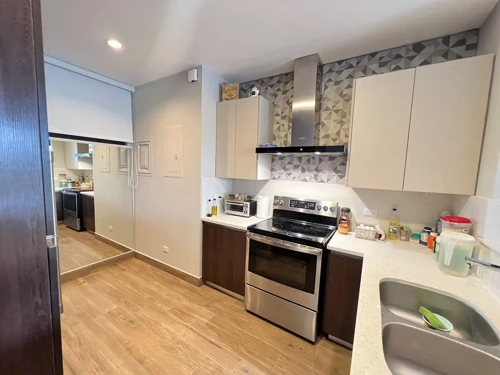 Incluye: estufa, extractor de olores, calentador de agua, librera de ingreso, desayunador, cortinas en rollables screen y blackout. Cortinas y repisas en Ducha, repisas desmontables en despensa, espejos en cocina y entrada y Sistema de filtración de agua ozono.