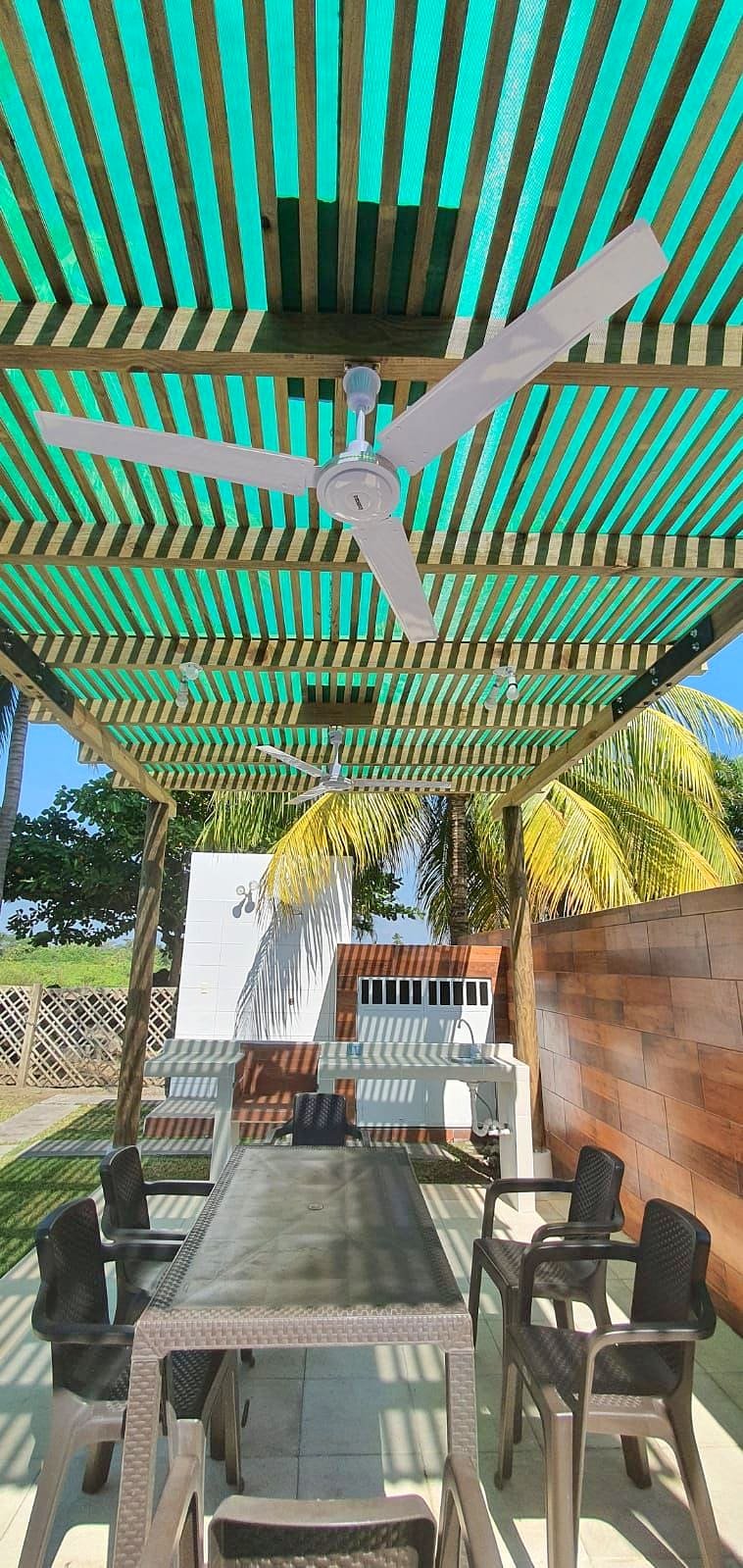 – Pérgola con mesa, sillas y churrasquera